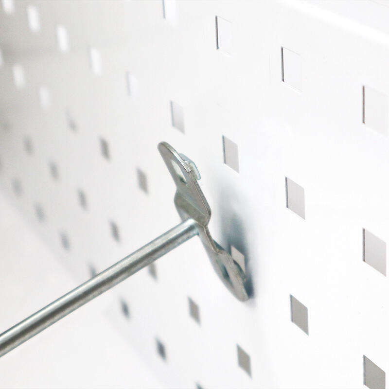 The single straight hook, made from durable steel material, is a practical and versatile storage accessory designed for hanging and organizing various items. The single straight hook is sturdy and durable, with a weight capacity that can support a range of items. It is an essential storage solution for any retail or commercial environment that values organization and accessibility, as well as for personal use in homes and garages.