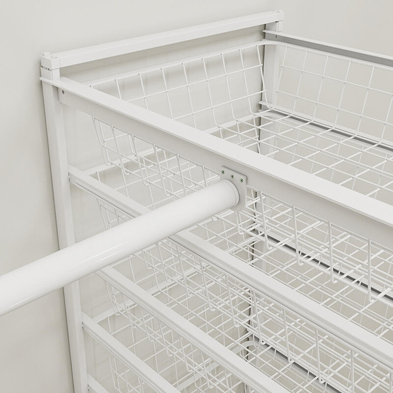 The Adjustable rail for connecting side panels from the closet series is a practical and durable storage accessory designed specifically for organizing shoes in a closet or wardrobe. Made from high-quality metal material, the gliding shoe rack features a design that maximizes storage space while keeping shoes in good condition. Its sleek and modern design complements any closet or wardrobe space, providing a stylish and functional storage solution.