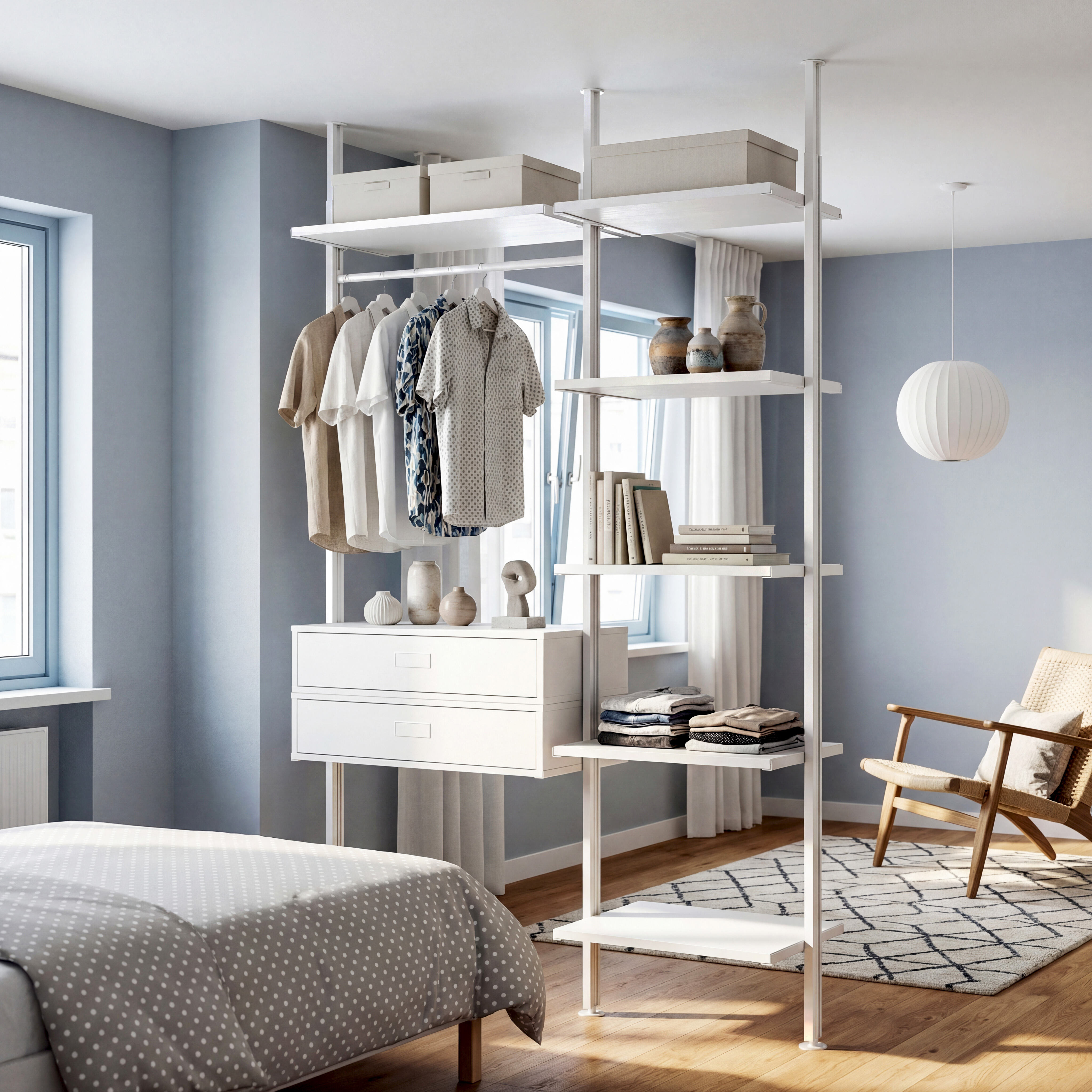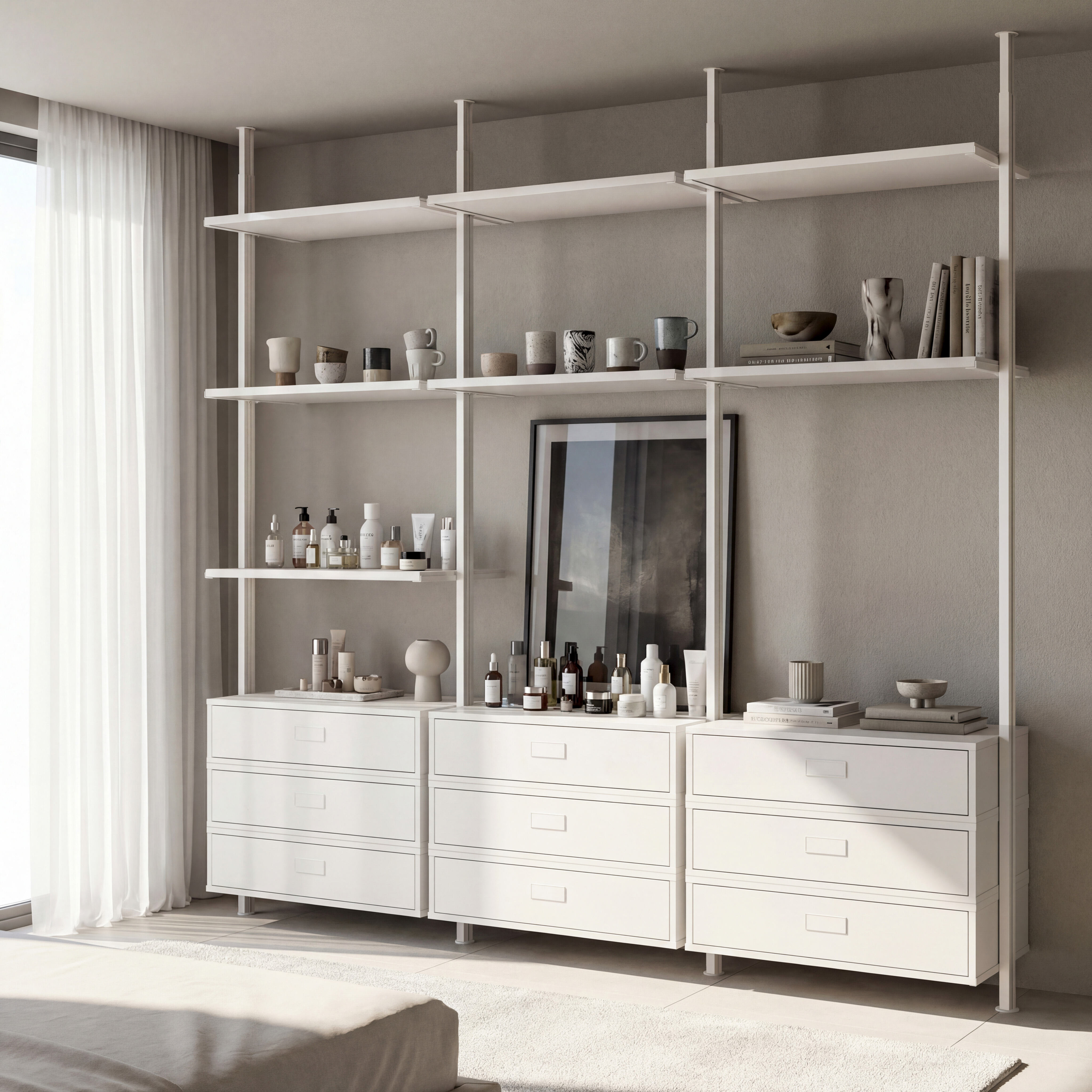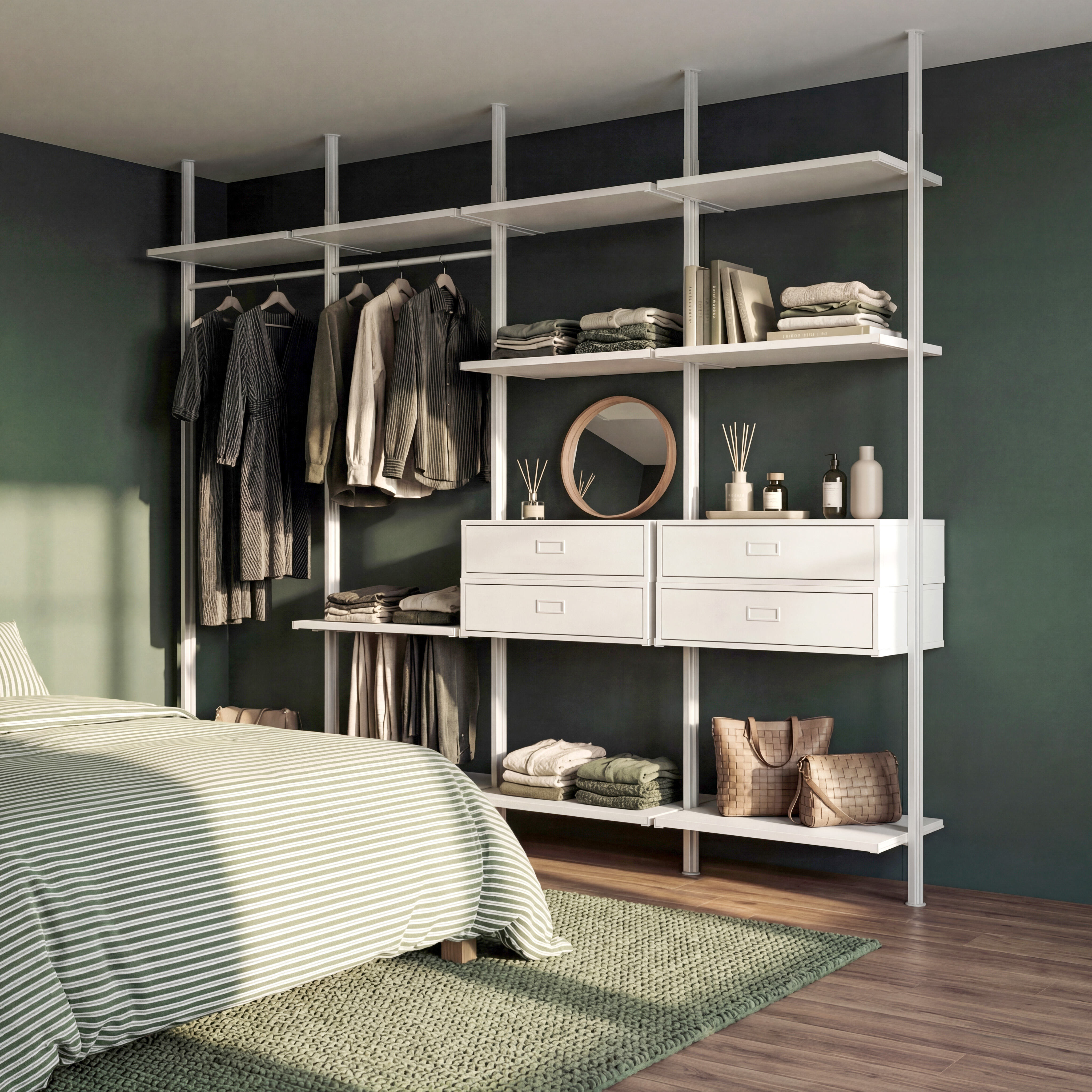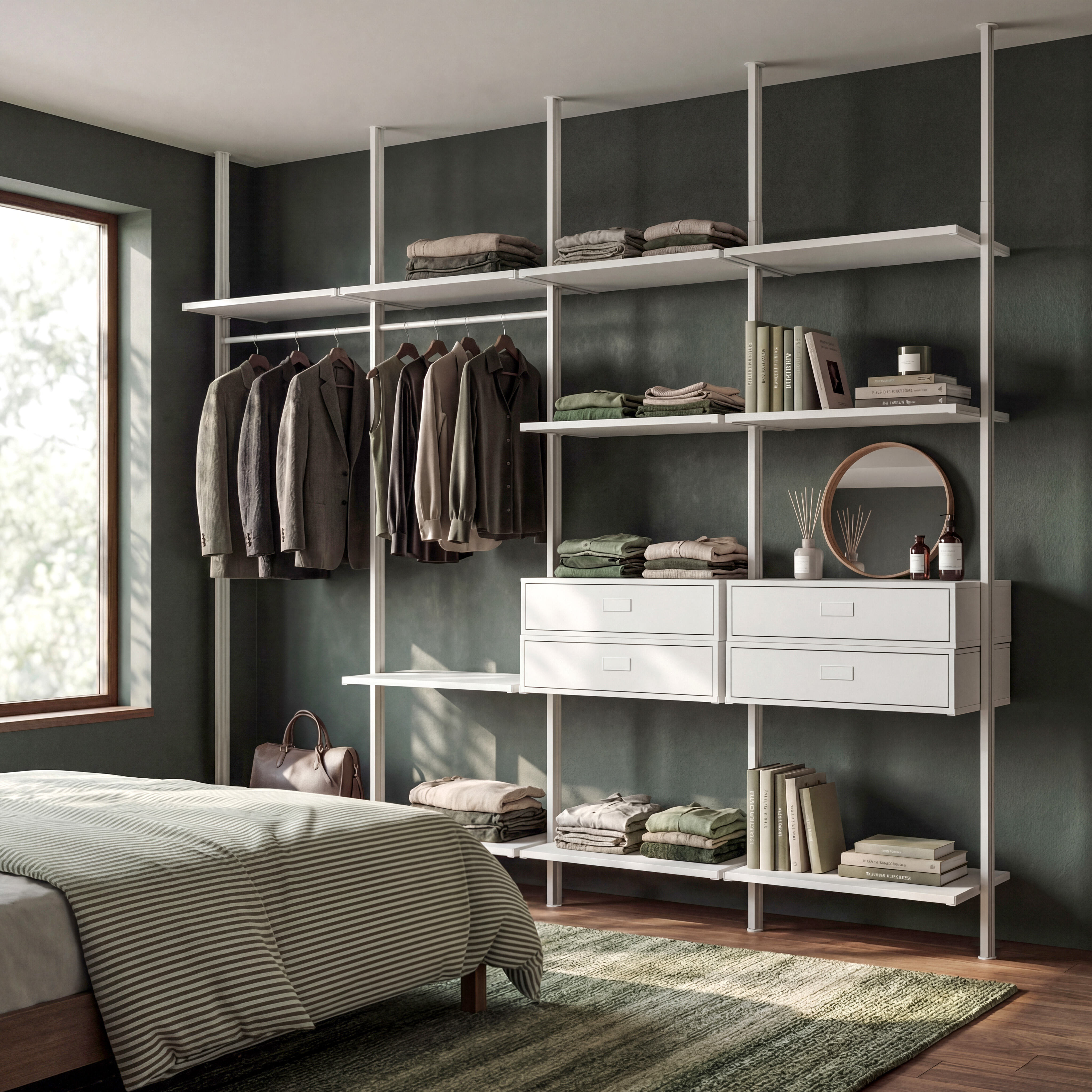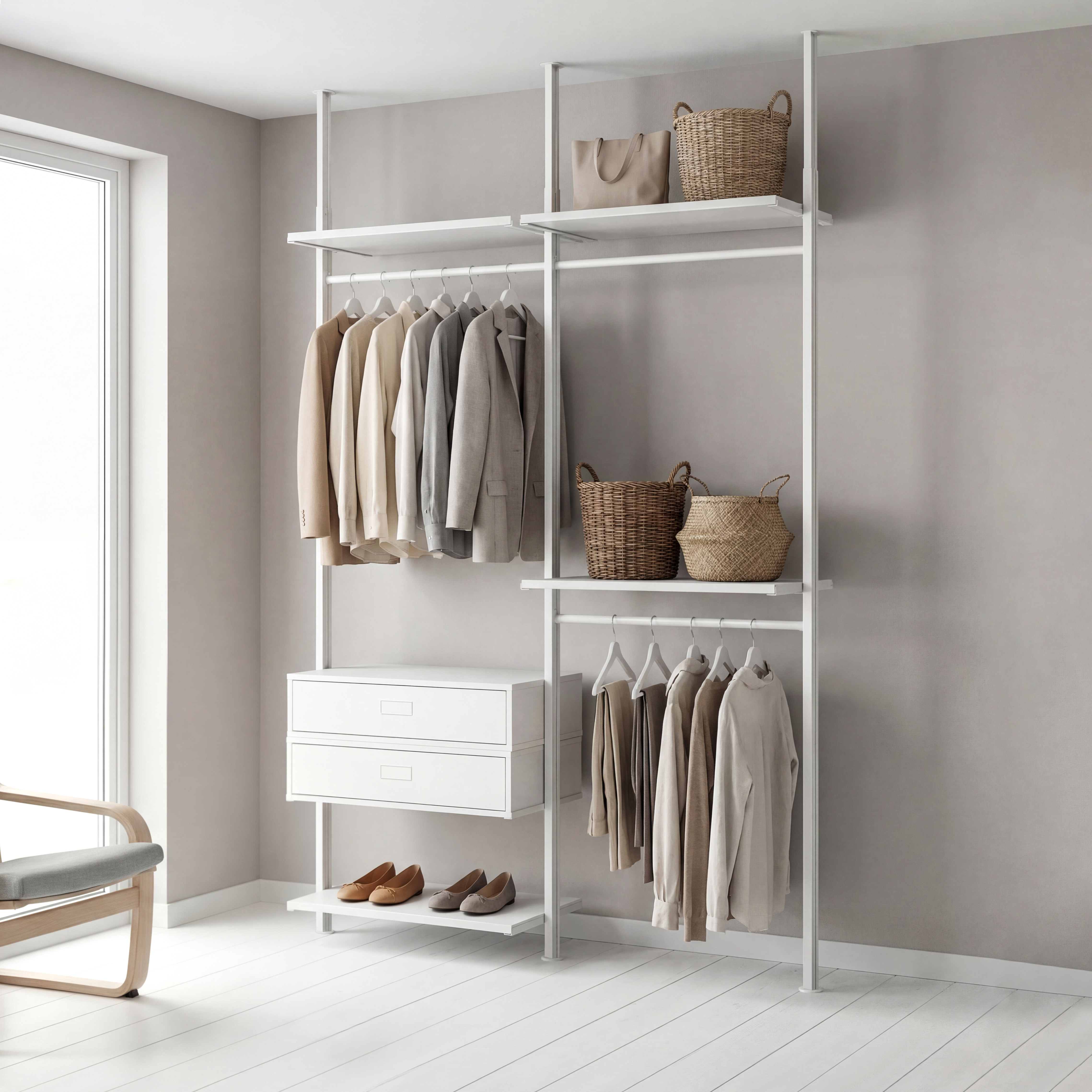 The Full Closet Organization Shelf System is designed specifically to provide a complete and customizable storage solution for any closet or wardrobe. Its wall-mounted, easy-to-install design allows for a reliable and sturdy foundation that transforms any space into a well-organized area. Featuring adjustable shelving, this system is built with durable steel construction to accommodate heavy-duty use while maintaining long-lasting stability. Its versatile rectangle shape offers ample storage space for clothes and accessories, and the eco-friendly design ensures sustainable and environmentally conscious construction, making it the ideal choice for a functional and responsible closet organization system.
