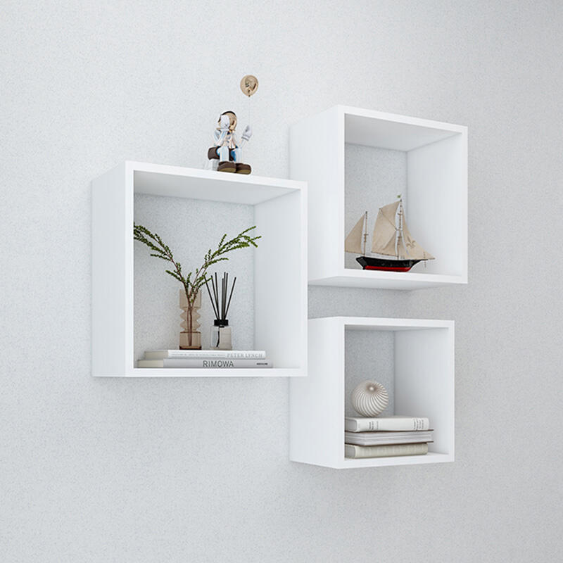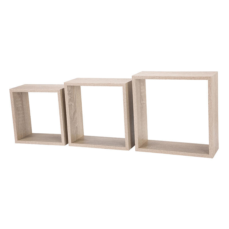 The cube-set from the wood shelf series is a practical and stylish accessory designed specifically for adding storage space to a living room or bedroom. Made from high-quality mdf and pvc material, the cube-set comes in a set of three square shelves that can be easily installed onto the wall. Its versatile design allows for the storage of small items, such as books, plants, or decorative pieces.