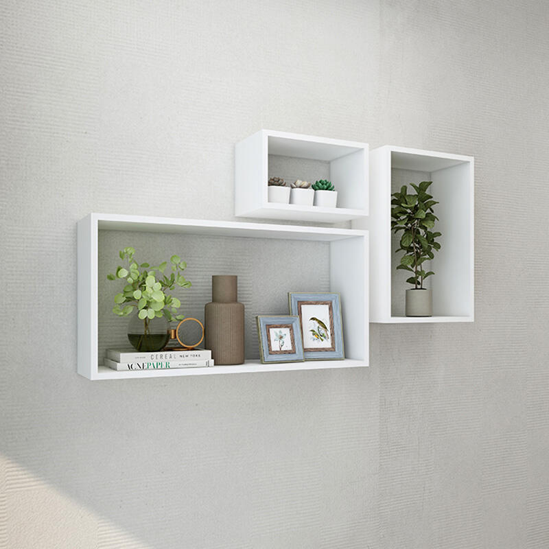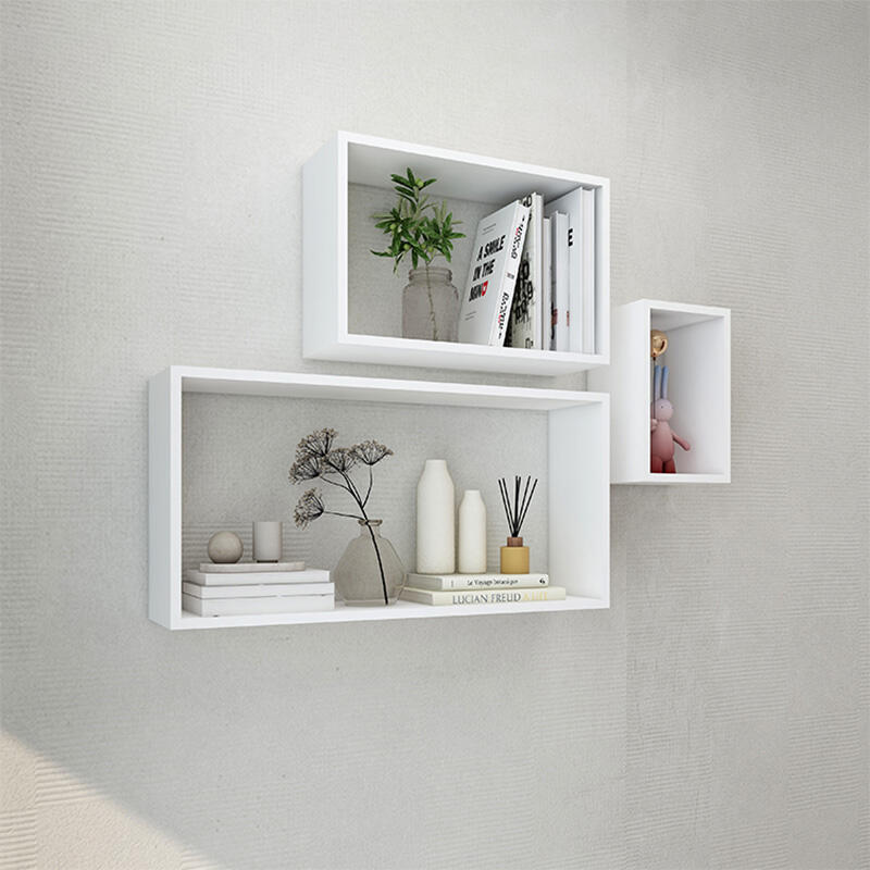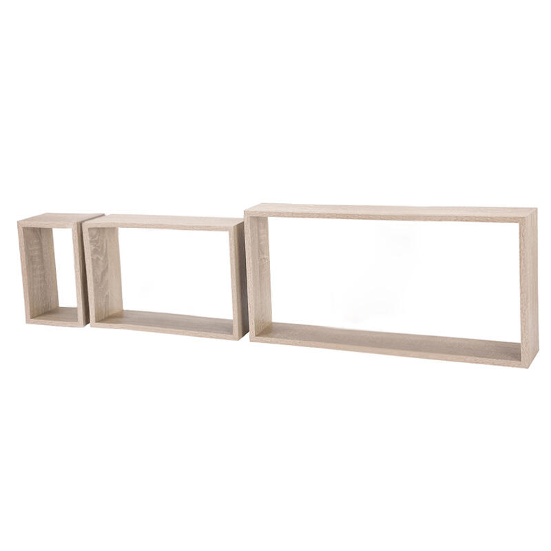 The cube-set large from the wood shelf series is a practical and stylish accessory designed specifically for adding storage space to a living room or bedroom. Made from high-quality mdf and pvc material, the cube-set large comes in a set of three rectangular shelves that can be easily installed onto the wall. Its versatile design allows for the storage of small items, such as books, plants, or decorative pieces.