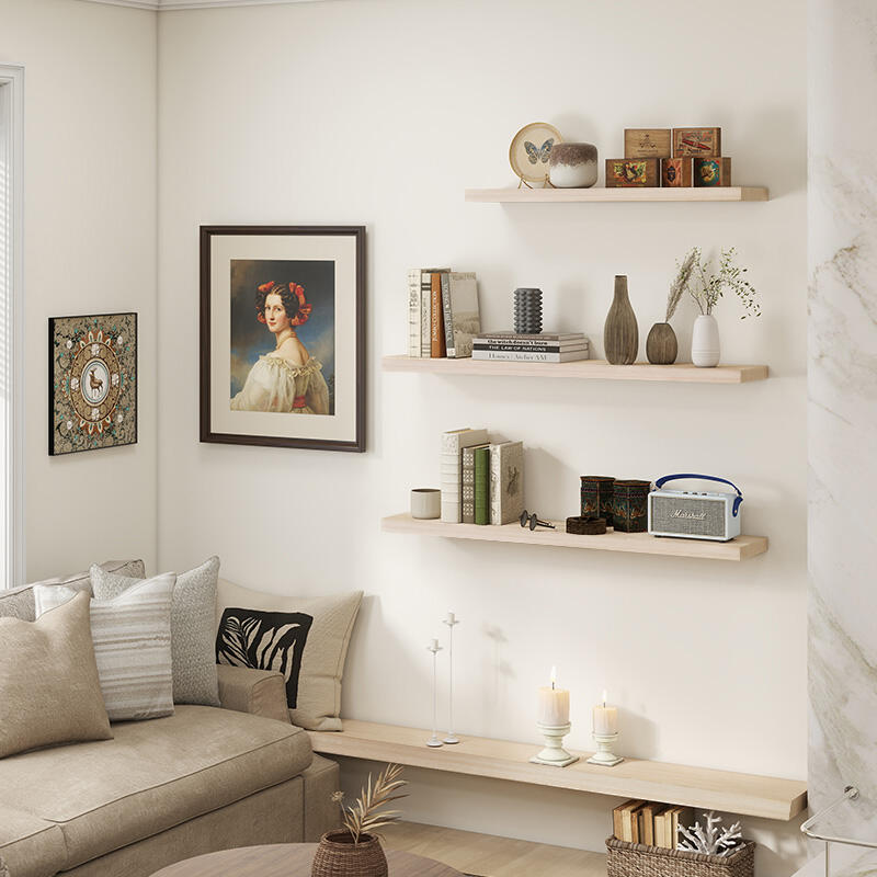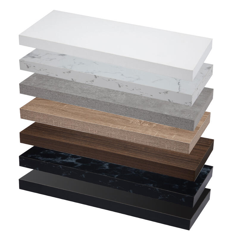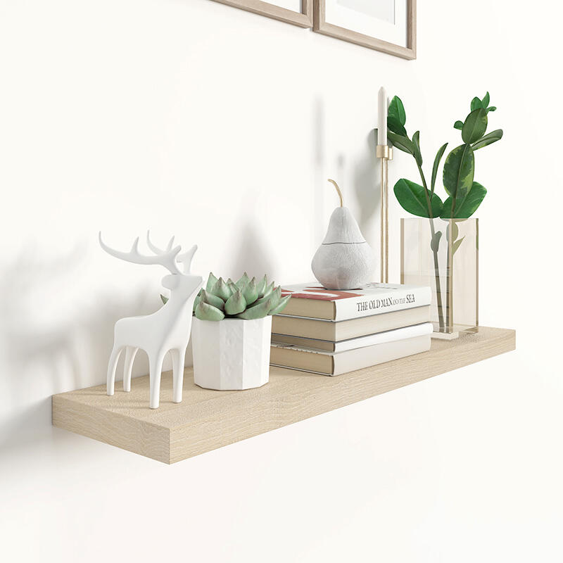 The decorative wall board from the wood shelf series is a stylish and functional accessory designed specifically for adding storage space to a living room or bedroom. Made from high-quality mdf and melamine material, the decorative wall board comes in a variety of colors and can support up to 15kg of weight. Providing a stylish and practical way to store books or display decorative items.