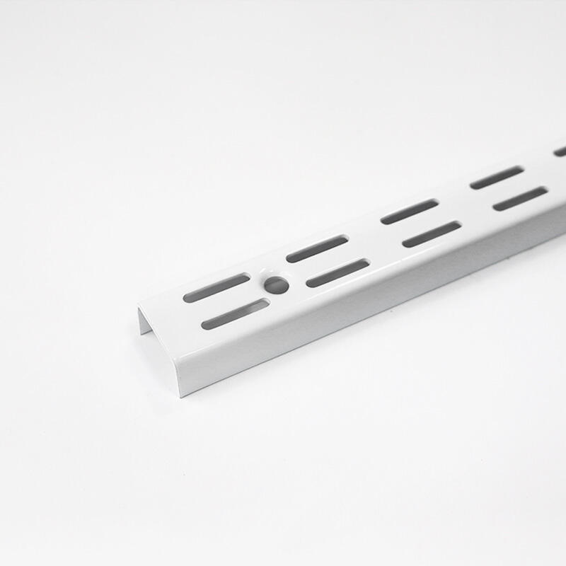 The double slotted wall upright is a versatile and sturdy storage solution designed for use in retail and commercial environments. Compared to the 50 series, the 32 series features slot spacing that is slightly shorter and the slots have a curved shape rather than a rectangular shape. Made from durable materials, this upright can withstand heavy loads and frequent use, offering a reliable and long-lasting storage solution.