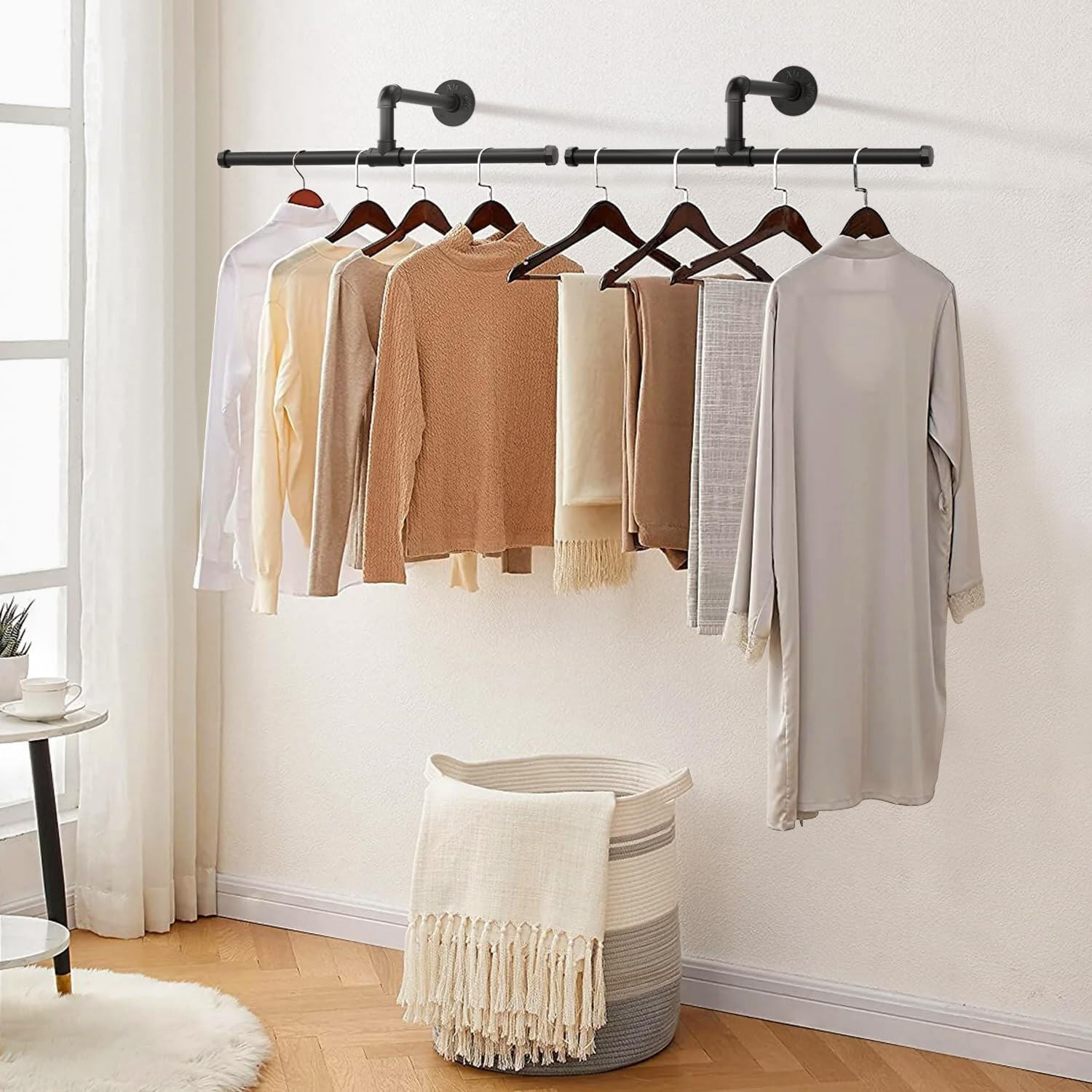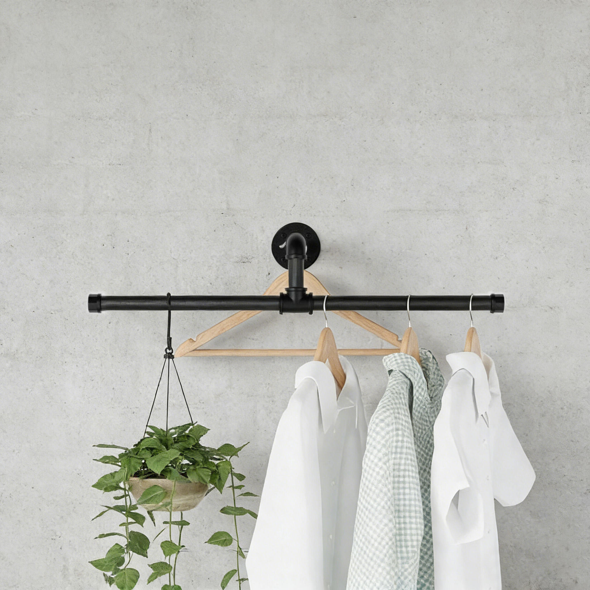 This wall-mounted pipe rack is a practical storage solution designed for efficient and flexible clothes organization. Its innovative detachable design allows the iron garment bar to be easily mounted or removed, enabling quick space reconfiguration. Made from heavy-duty metal and secure industrial pipe fittings, this unit is built to support substantial weight and provide durable, long-lasting performance. Ideal for compact apartments, closets, entryways, or laundry rooms, it offers a space-saving and reliable way to create extra hanging storage wherever needed.