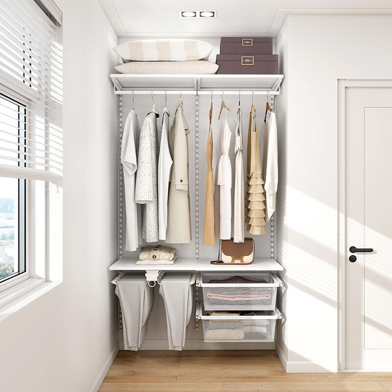 クローゼットシリーズのレールフックは、クローゼットやワードローブ内で衣類用レールを確実に固定するために特別に設計された、実用的で機能的なアクセサリーです。高品質なスチール素材で製造されており、衣類用レールに頑丈で信頼性の高いサポートを提供します。独自のデザインにより、サポートブラケットへの取り付けが簡単で、レール構造を安定させます。