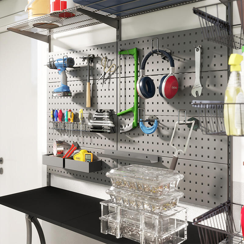 A placa de ferramentas, também conhecida como placa de furos quadrados da série 50, é um acessório de armazenamento durável e versátil, projetado para ser usado com montantes de parede perfurados. Fabricada em material de aço de alta qualidade, esta placa de ferramentas possui furos quadrados que permitem uma fácil fixação e personalização de ganchos, prateleiras e outros acessórios de armazenamento. Sua construção robusta suporta cargas pesadas e uso frequente, oferecendo uma solução de armazenamento confiável e duradoura.
