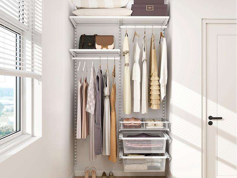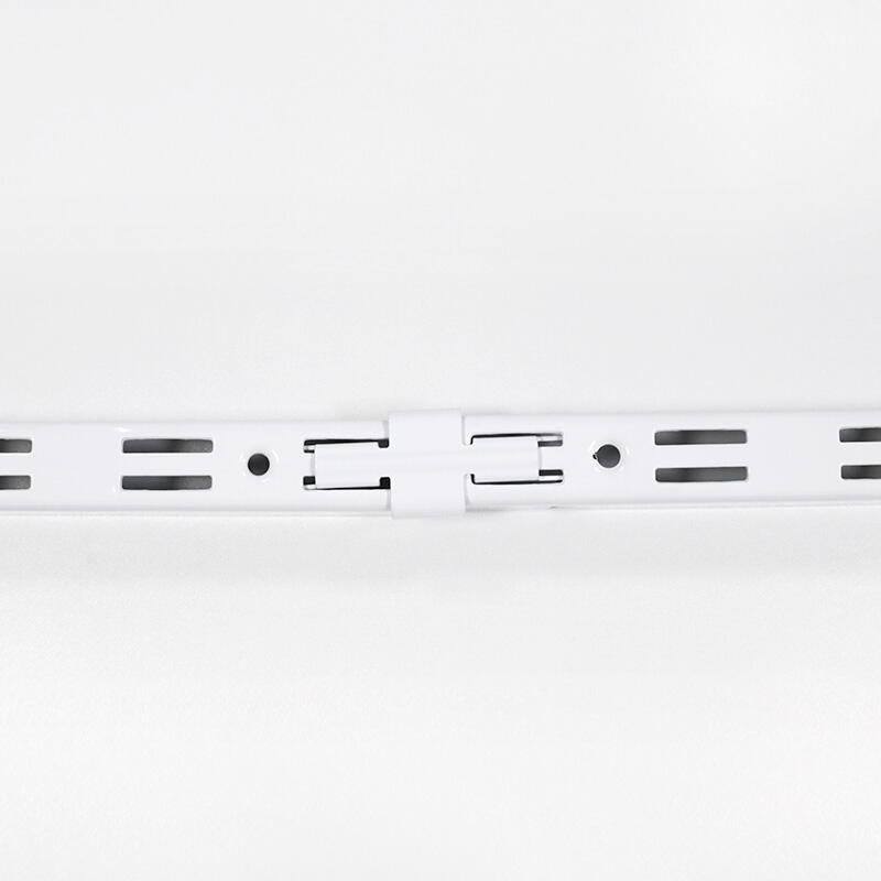 The rail connector from the closet series is a practical and functional accessory designed specifically for connecting two hang tracks in a closet or wardrobe. Made from high-quality materials, the rail connector installs easily onto the two hang track, providing a secure and reliable connection. Its unique design allows for easy customization to fit any closet or wardrobe space, providing a long-lasting storage solution.