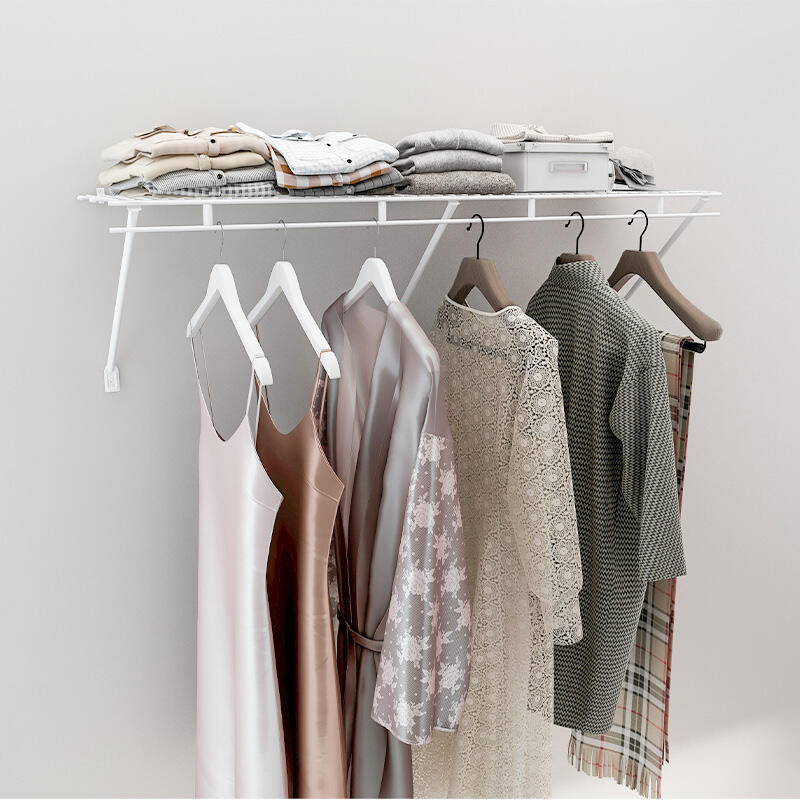 The rod wire shelf from the american closet series is a practical and versatile storage accessory designed specifically for organizing clothing, accessories, and other items in a closet or wardrobe. Made from high-quality steel material, the rod wire shelf features a clothes rod that can support up to 40kg of weight, making it a reliable and durable storage solution.