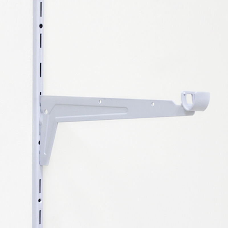 The single-s-50 bearing for clothes rail is a sturdy and durable accessory designed for use with slotted wall uprights. This bearing features a single-slot design that allows for easy installation and adjustment of clothes rails. Its sturdy construction can withstand heavy loads of clothes, and its adjustable design allows for fitting a range of garments.
