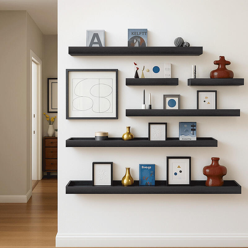 The trough shelf from the wood shelf series is a practical and sturdy accessory designed specifically for adding storage space to a living room or bedroom. Made from high-quality mdf and pvc material, the trough shelf comes in a variety of colors to suit different preferences. Its unique trough design provides added stability and support for items placed on the shelf.