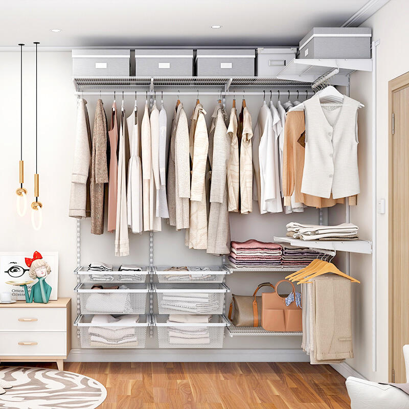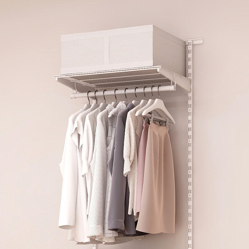 The wall rail from the closet series, made from high-quality steel material, is a practical and stylish storage accessory designed specifically for organizing and displaying clothing and accessories in a closet or wardrobe. Its unique design allows for easy attachment and customization of shelves, hooks, and other storage accessories, making it a great addition to any walk-in or built-in closet.