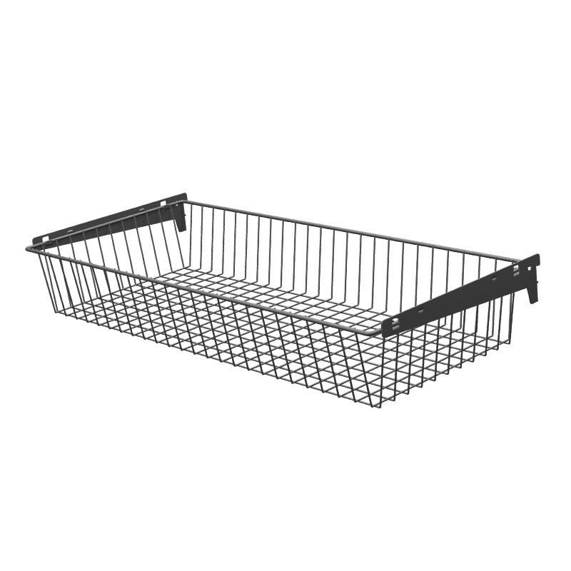 The wire basket with brackets is a versatile storage accessory designed for use in slotted wall uprights. Made from high-quality steel wire, this basket is durable and can withstand heavy loads. Its open design allows for easy access and visibility of stored items, while its adjustable brackets make it easy to install and adjust to fit a range of products.