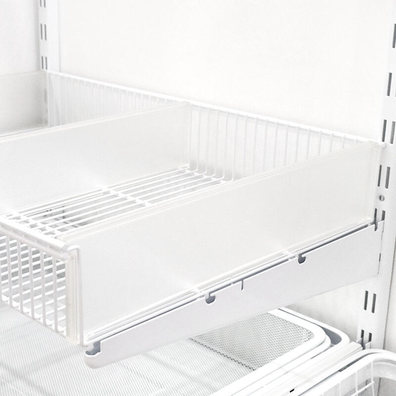 The wire shelf basket divider from the closet series is a practical and durable accessory designed specifically for the u-shape wire shelf basket, made from high-quality abs material. The wire shelf basket divider installs easily onto the u-shape wire shelf, creating several divided sections, and providing a convenient way to separate and organize clothing, accessories, and other items.