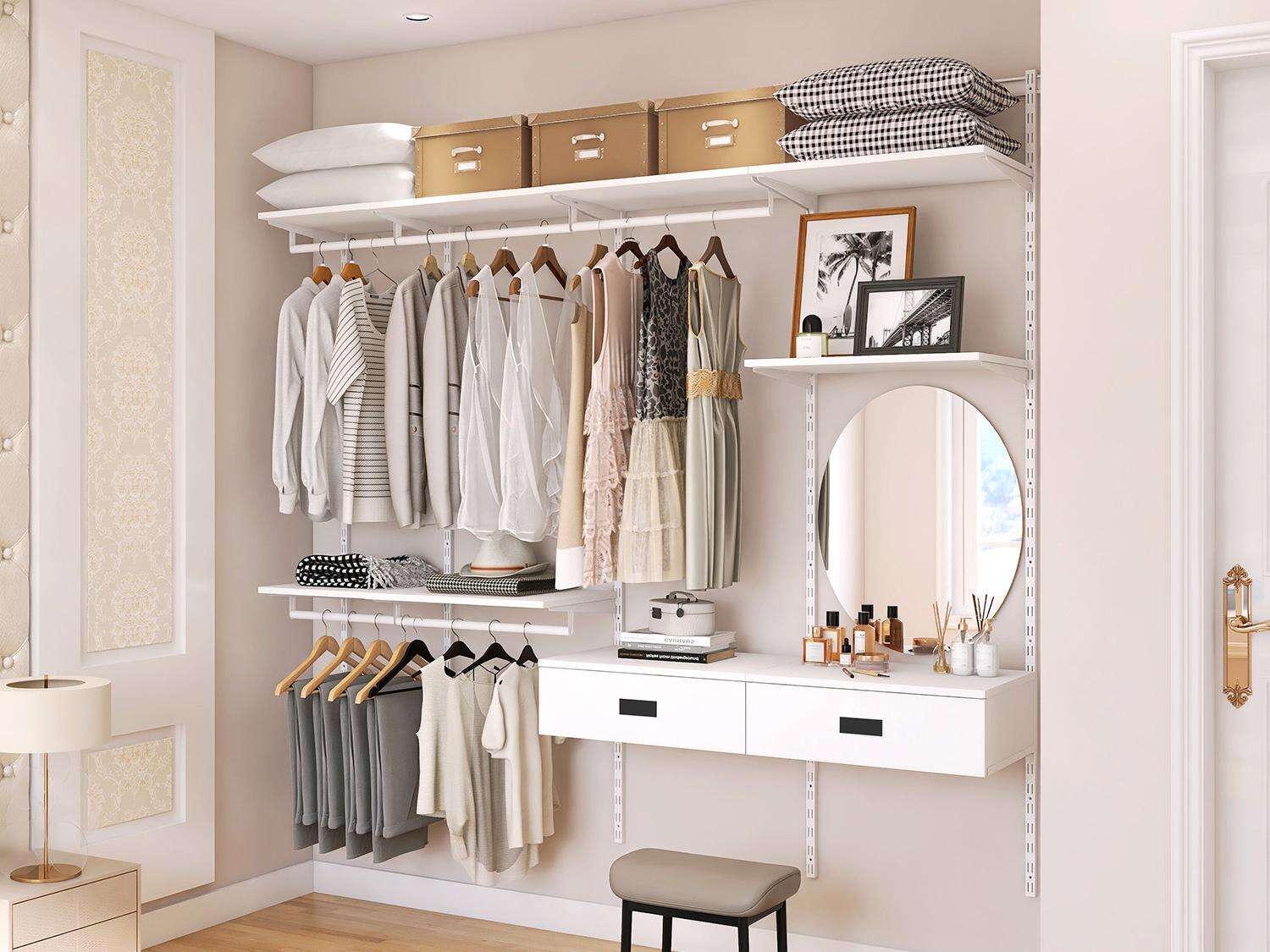 The wire shelf bracket is designed specifically to support wire shelves in a closet or wardrobe. Made from high-quality steel material is designed to work in conjunction with the hang track, providing reliable and sturdy support for wire shelves. Its easy-to-install design allows for seamless integration onto the hang track, providing a flexible and functional storage solution.